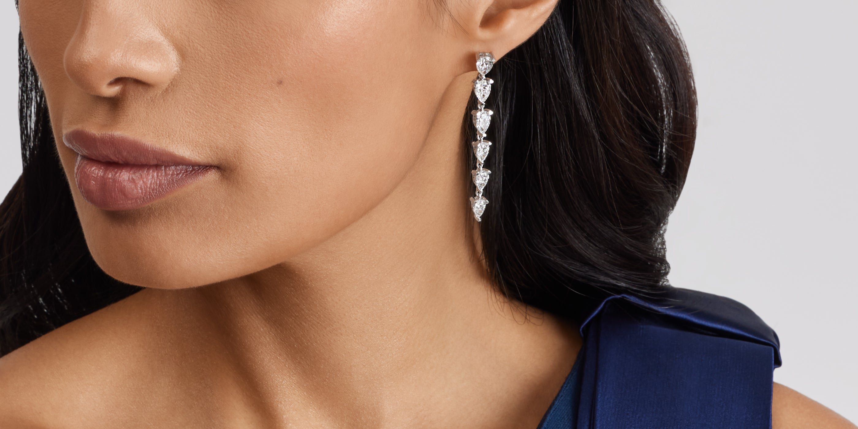 Our Inverso Earrings beautifully balance elegance and modern design. Each earring features six pear-shaped diamonds, totaling 7.28 carats, set in heart-shaped prongs. One earring showcases diamonds pointing downward, while the other has diamonds facing upward, creating a striking and harmonious contrast. Crafted in 18k gold, these earrings are designed to catch the light from every angle, highlighting refined craftsmanship with a contemporary edge.